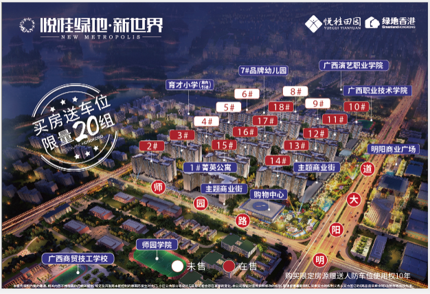 悦桂绿地新世界,市县价买首府南宁房,首付4万起,买房送车位,数量有限,先到先得,5字头就能入主南宁南,支撑公积金,享广西最强红利,肥水已流外人田,你还不行动?