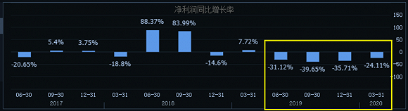 实际上,自2019年2季度以来,福耀玻璃净利润就出现大幅下降,公司Q2、Q3、Q4净利润下滑幅度均超过30%,市场一再预期的SAM减亏、扭亏也并未实现。而在新冠疫情在全球蔓延之后,福耀股价在今年3月份一度大跌25%,市值缩水四分之一。