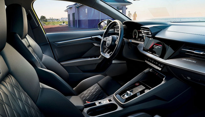 车辆内部沿袭了基础款A3的功能特性,但通过添加许多的细节用以凸显“专注驾驶”的车型取向。如,运动座椅、铝合金和碳纤维的装饰件以及改型的空调出风口共同组成了全新奥迪S3的整体内饰。各种镂空和数字显示表的存在,则时刻在提醒消费者奥迪是德系御三家中最为拥抱科技感的那个品牌。