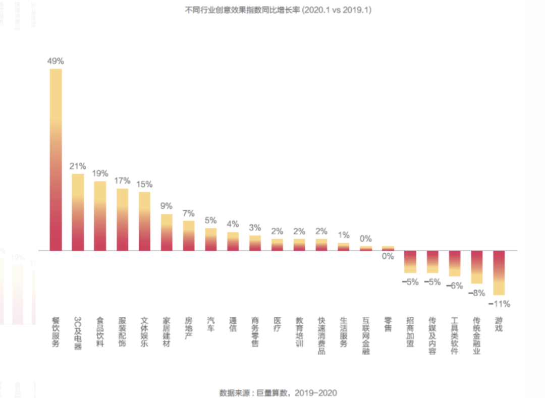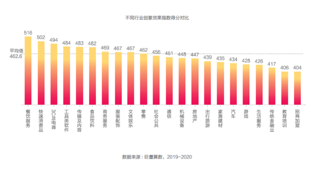 从麦当劳的实体优惠券到短视频平台上的效果广告,餐饮行业因其内容本身贴近生活,吸引用户注意力,以及强诱惑力便于转化的特点,广告效果好于其他行业。
