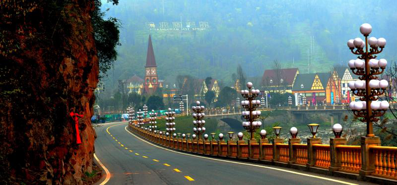 花水湾古海水温泉是成都地区唯一的医疗级古海水温泉,花水湾镇被联合国人居奖(中国)署授予人居环境优秀奖。