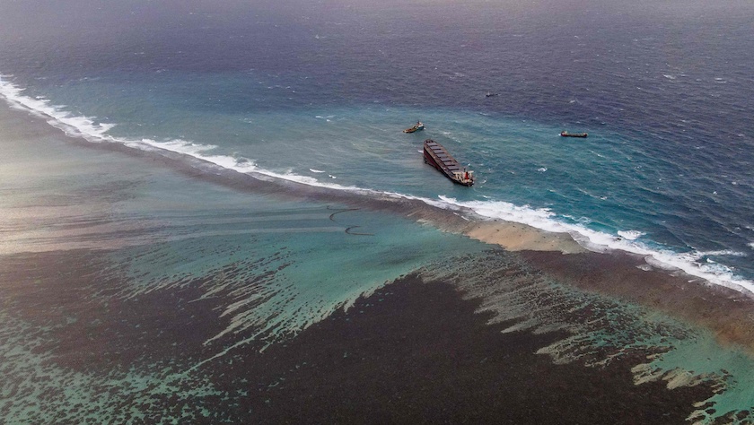“若潮”号7月25日在毛里求斯东南部海域的一片珊瑚礁上搁浅,距离海岸线约3.2公里,全部20名船员安全撤离。十天后,船体破裂,大量燃油泄漏,毛里求斯当局随即组织开展大规模清洁工作,但清洁的速度远远赶不上燃油渗入海的速度。