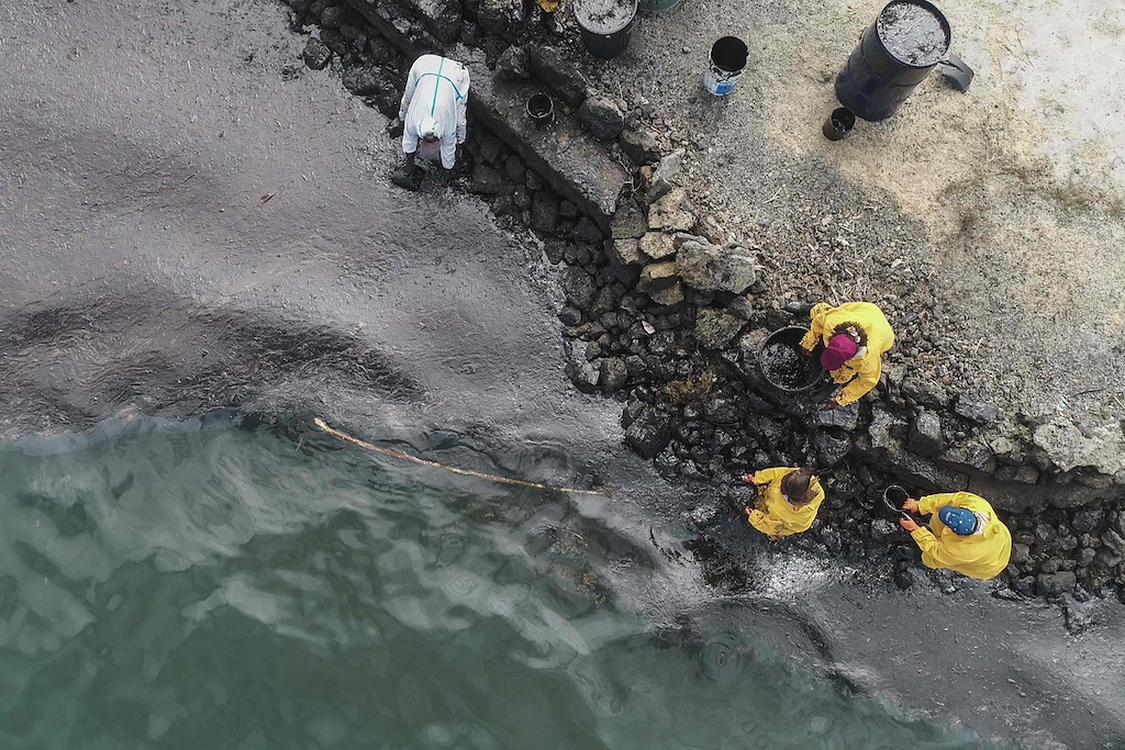 志愿者们只能用甘蔗叶和稻草制成拦油栅,绑上塑料瓶投入海里,防止漏油扩散。事发海域附近的马埃堡市理发店自发收集头发,填入尼龙长筒袜,也制成拦油栅。还有居民无视政府不要前往海边的要求,用空油桶收集燃油。