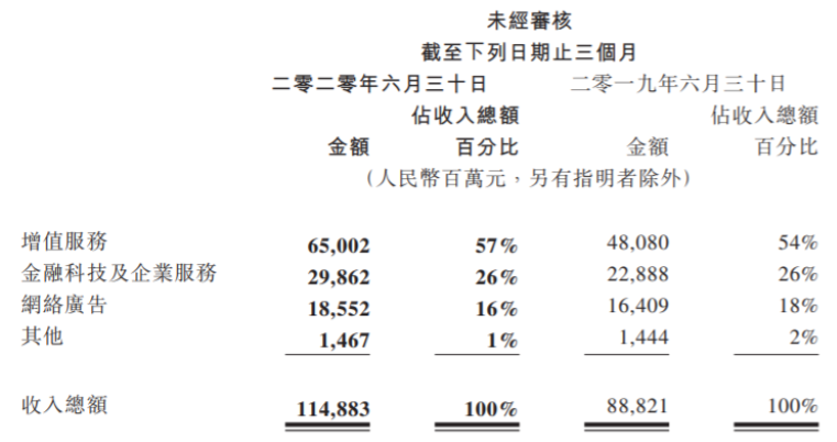 财报显示,金融科技及企业服务收入增长主要反映因由于日均交易量和单笔交易金额增加,带动商业支付收入的增长、理财平台收入的增长,以及因公有云消耗量增多(尤其是互联为服务及民生服务行业)带动云服务收入的增长。