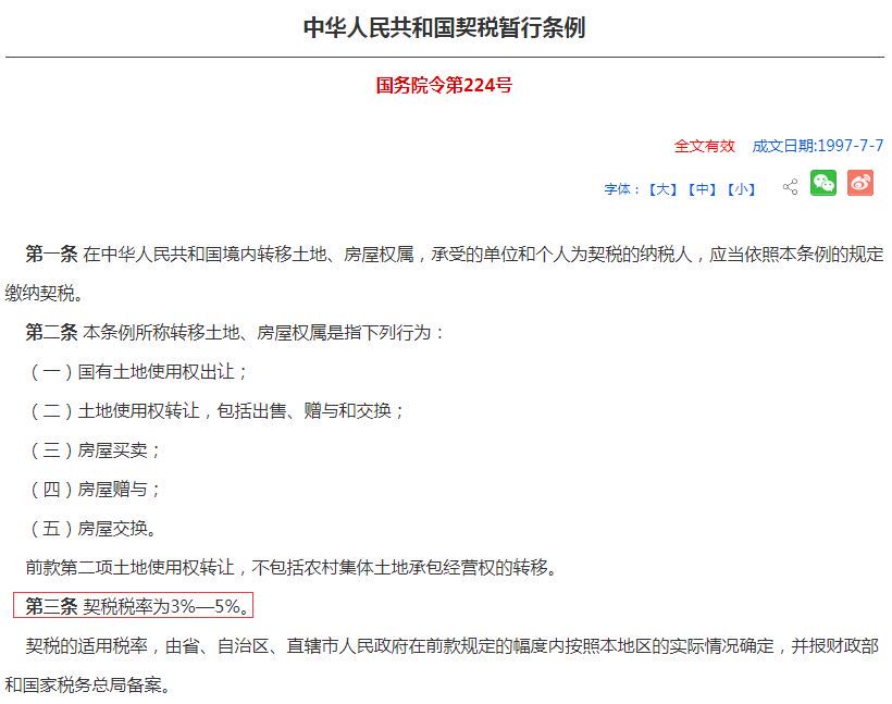 此外,这次《契税法》的出台,是将《中华人民共和国契税暂行条例》升级为《中华人民共和国契税法》,从暂行条例升级为人大立法,更具法律效力!