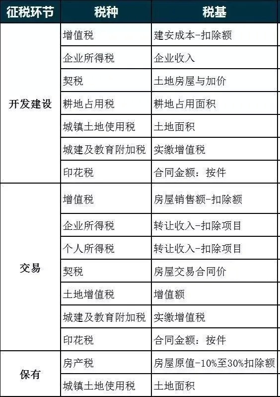 房地交易环节:土地增值税、企业所得税、个人所得税、城市建设维护税等……