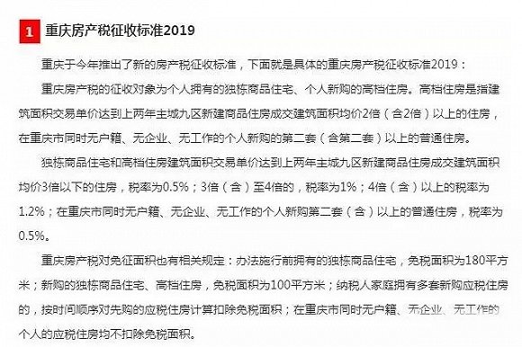 当然,2019年,重庆有推出了新的房产税征收标准。