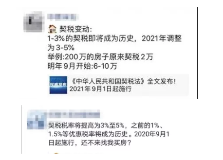 契税法发布后,就开始有个别的中介以及置业顾问开始借此表示:现在不买房,等新契税法施行后,买房成本将大大增加。不停向买房人贩卖焦虑!