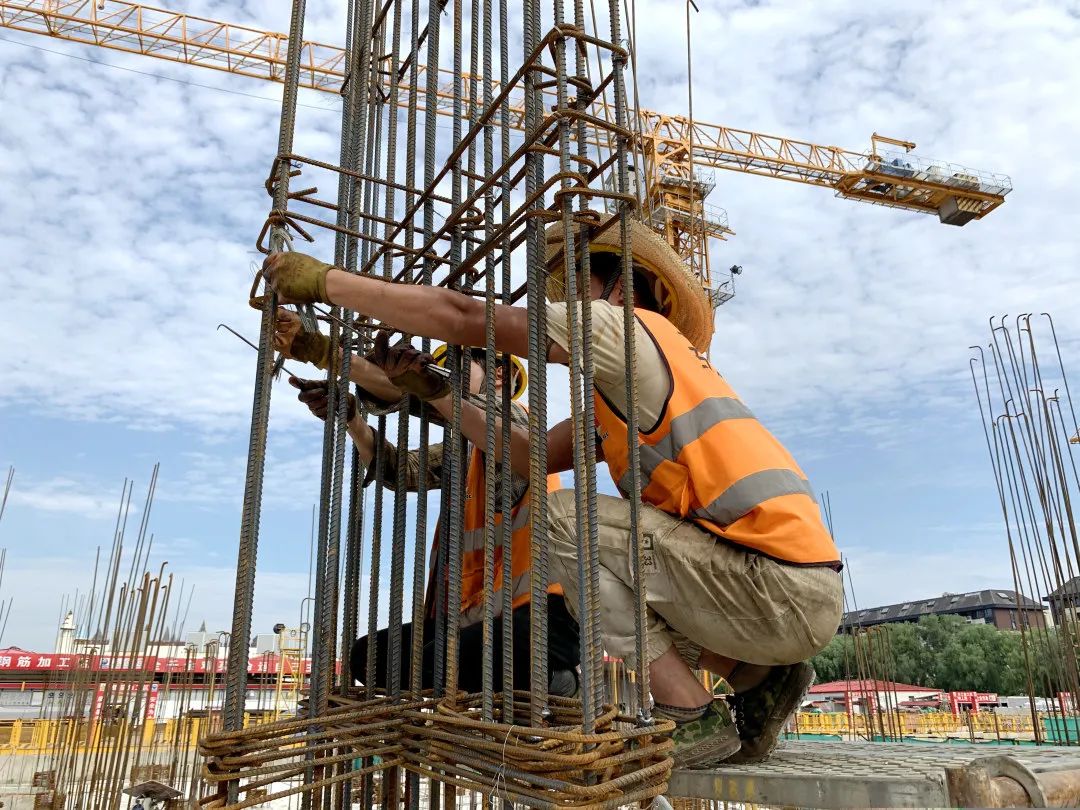 今年46岁的钢筋工杨凯每天和这些滚烫的钢筋“亲密”接触,一手固定住钢筋,一手熟练地用工具把钢筋绑扎扣死,这样的一个动作,他每天都要重复无数次。