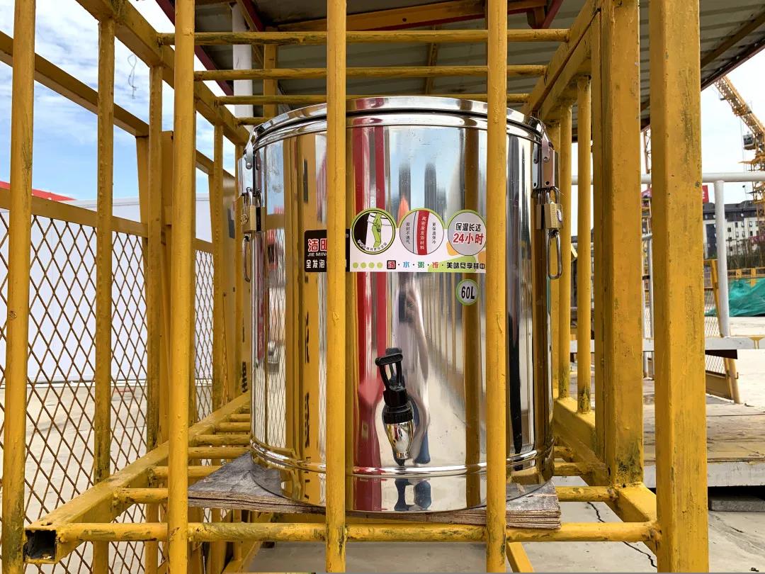 项目部在工地旁设置了茶水亭,全天提供饮用水、大麦茶,工人还可以随时进来歇歇脚。