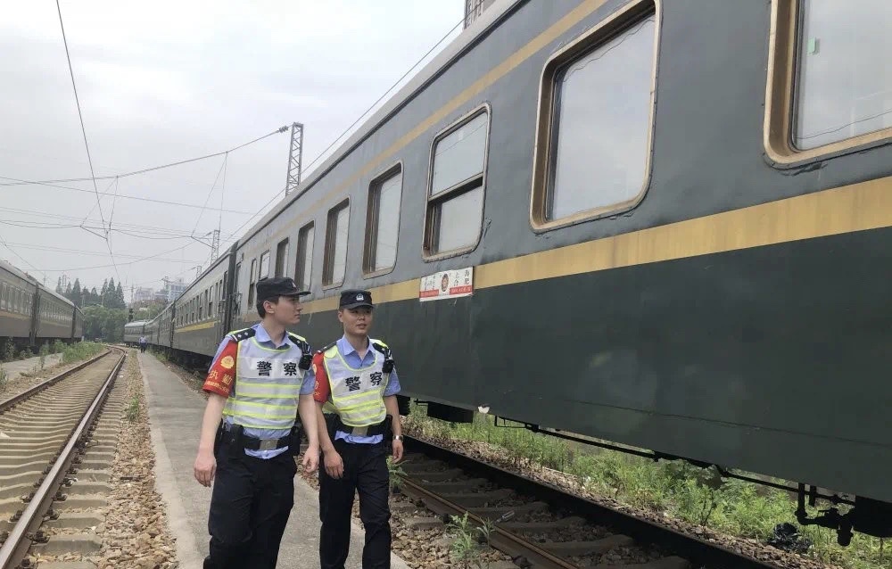 在光新路附近的铁路沿线,民警们正在进行日常的沿线巡视。说是“战高温”,不过是他们的工作常态。
