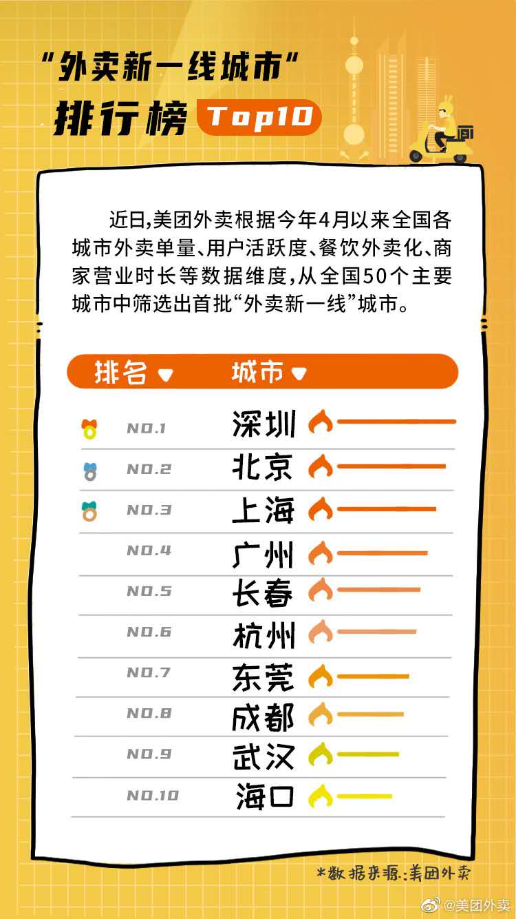 其中,海口排名第十,成为首批“外卖新一线城市”。与海口同样在名单之列的还有深圳、北京、上海、广州、长春、杭州、东莞、成都、武汉。