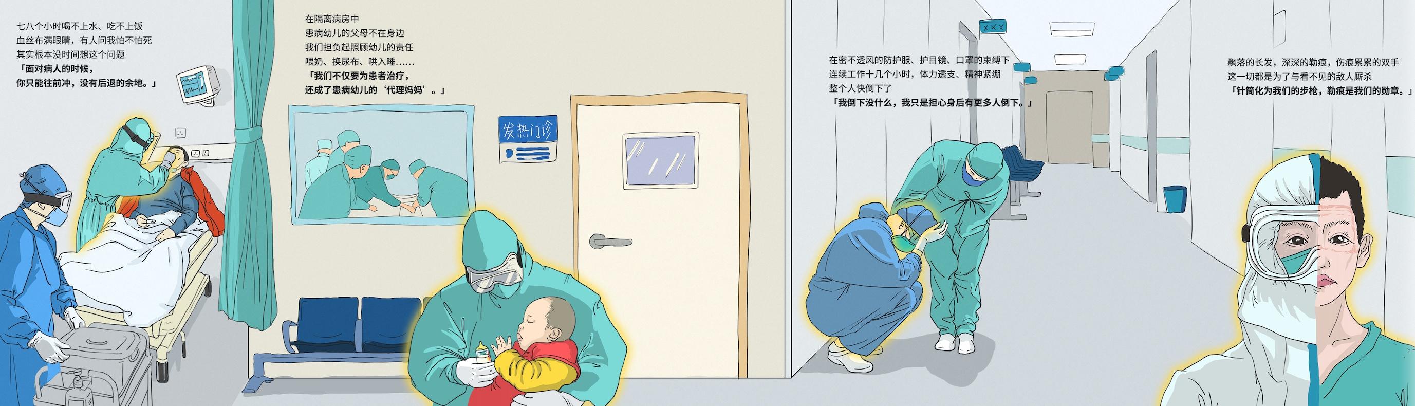 来源:“让世界看见她”公益H5中战“疫”前线缩影