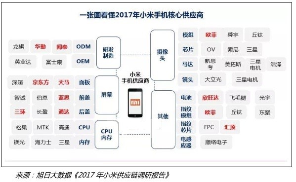 这其中,接过小米低端手机芯片订单的高通,出货增长300%,为小米提供内存芯片的供应商“海力士”营收大增200%,小米电池的供应商欣旺达2017年同比增长60%。