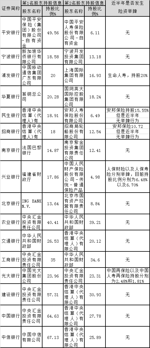 股份制银行中还有一家是中信银行。这家银行的第一个股东持股比例高达67.13%。一股独大的结构,意味着,即使有险资举牌,也难以对公司决议形成重大影响力,险资举牌概率不大。