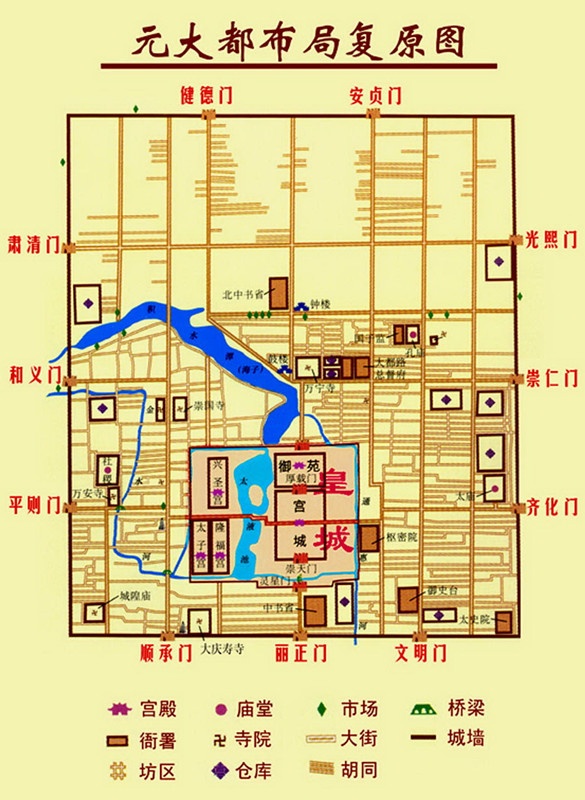 所以,今天你能来北京,不要再感谢完颜亮了,要感谢的人是忽必烈,从某种意义上,北京作为中国最早大一统的首都是从元代开始,元大都街道的布局,奠定了今日北京城的基本格局。
