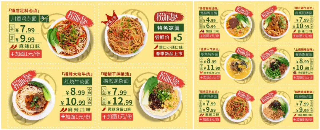 十八汆9.9元一碗面的价格就已让人瞠目结舌,捞派有面儿的人均则直接给出了抄底跳楼价,像红烧牛肉面只卖6.99元一大碗,特色凉面更是让人惊掉下巴,直接给到2.99元一碗。客单价低于同行30%的捞派有面儿、十八汆,显然,海底捞打的就是价格战。