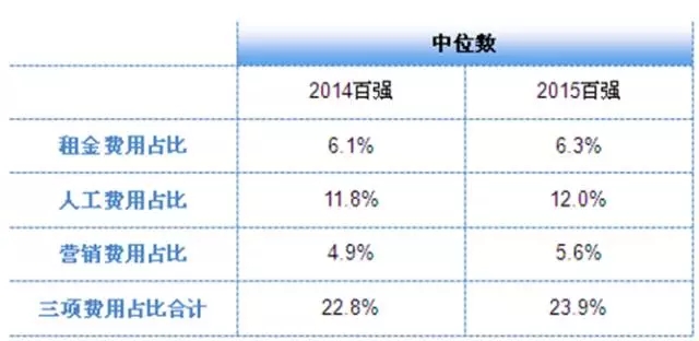 然而,未来成本管控的难度不见得会减轻多少。“2015中国药品零售企业综合竞争力调研”报告指出,2015年百强企业总费用率和单项费用率都比2014年有所提升,从而导致毛利率和净利率的下降(如下图)。