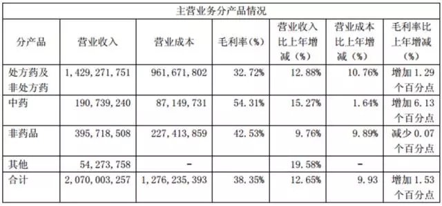 据老百姓2015年半年度报告披露的数据显示,2015年上半年老百姓营业总收入超过20亿元,其中零售板块营业收入大约为19.92亿元,,比上年增长11.83%,毛利率39.54%,增加1.82个百分点。而在老百姓主营业务分产品领域中,营业收入最高的是药品(处方药与OTC),其次是中药,第三是非药品,但毛利率最高的却是中药,为54.31%,而且毛利率增速最高,比上年增加了6.13个百分点(如下图)。