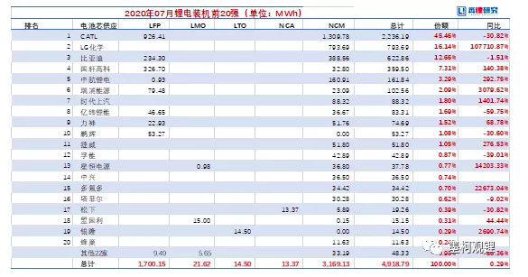 7月,宁德时代(300750.SZ)以2.24 GWh的装机量仍独占鳌头,市场占比为45.46%。