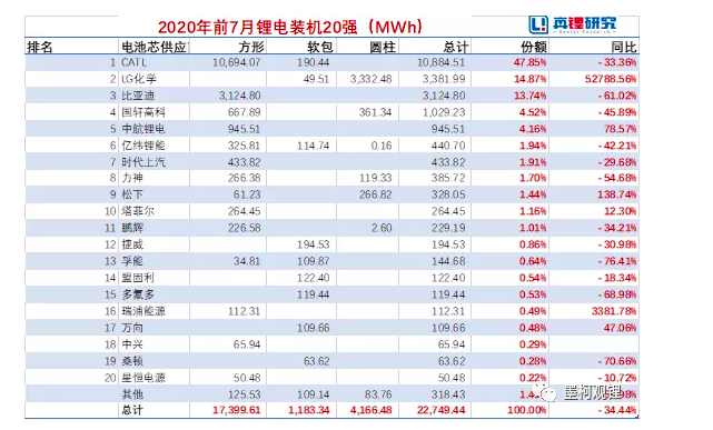 前7月,中国动力电池整体装机仍为下降。