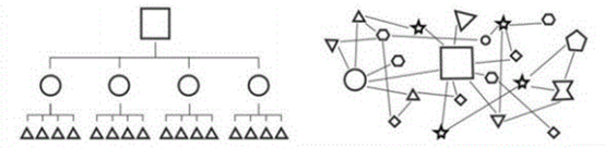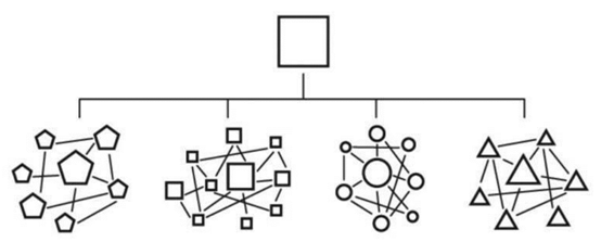 在咨询领域,有一个原则叫MECE,即“相互独立,完全穷尽”(mutually exclusive and collectively exhaustive)。过去,MECE式结构在组织框架中应用广泛:领导者自上而下地进行指挥,拆解并分配任务,而被指示者只需听命于上级,自扫门前雪。传统的军事指挥架构、公司运转架构,都是这样。