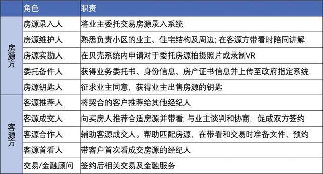 但贝壳找房的ACN系统更上一层次,除了开放共享真实房源信息抽取佣金以外,交易过程中贝壳找房的ACN系统把卖房拆成了多个角色。同品牌或跨品牌经纪人凭借他们自己的“比较优势”, 共同参与到同一笔交易,成交后按照各个角色的贡献度进行佣金分成。