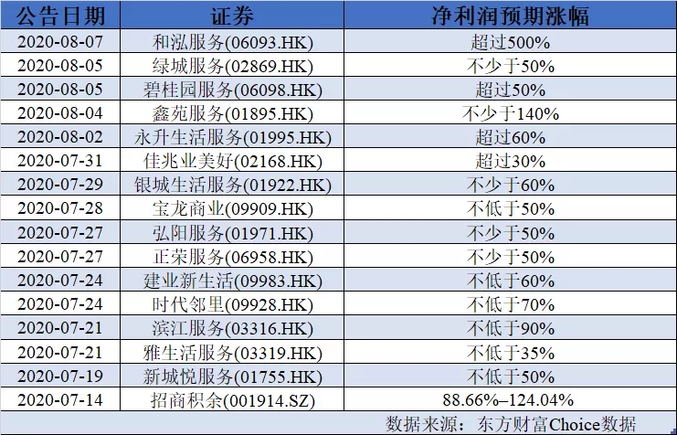 7月份时,中信证券发布报告称,预计物管行业重点公司中期业绩增长37.8%。中金公司也给出了2020年上半年物业企业“业绩稳健”的预判,其中,其预计雅生活服务同比增长31%、保利物业同比增长25%、中海物业按人民币口径同比增长23%等。