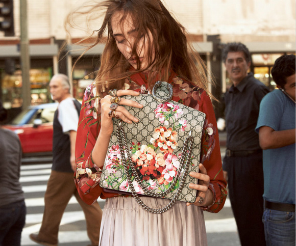新任创意总监首季作品的时尚大片!地点就选在街头,Gucci 女郎甚至还搭乘地铁。