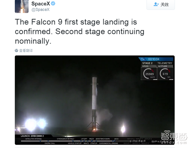 随后,SpaceX在Twitter上发布了一条简短而平静的消息:“第一级已经着陆。”