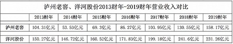 若以泸州老窖目前增长态势重回三甲,仍困难重重。根据公开资料显示,洋河股份2019财年实现营业收入为231.26亿元,远超泸州老窖。