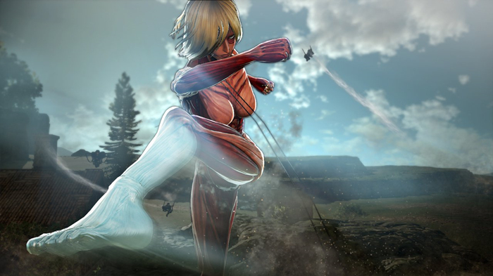 KT社发布了由动漫改编游戏《进击的巨人》海量新截图,并透露了新章节中的游戏剧情。新的剧情中,由阿尼·利昂纳德变身的女巨人登场并与巨人化的艾伦耶格展开肉搏战,女巨人身高14米拥有凌驾于军马之上的超快移动速度并且可以召集其他巨人。与动漫剧情吻合,女巨人与巨人化的艾伦耶格都具有极强的破坏能力,但是女巨人的格斗技巧和局部硬化能力使得艾伦毫无还击能力。