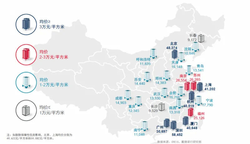 如深圳地区均价达到5.85万元/平方米,排在全国首位;