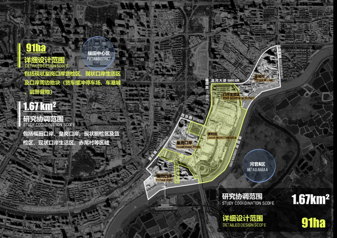 位于合作区深圳一侧的皇岗口岸片区,南临深圳河,西接皇岗口岸综合枢纽和福田口岸,与合作区香港园区隔河相望,是未来深港科技创新合作最紧密、最核心的片区。