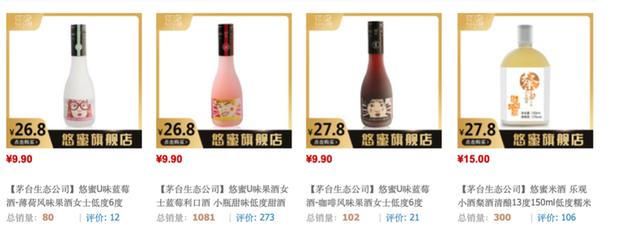 然而,泸州老窖的桃花醉,本月销量仅有58瓶;五粮液的仙林青梅酒在淘宝上并无销售,在京东上也仅有一条搜索结果,并只有三条评价;茅台旗下“悠蜜”更加惨淡,自上架以来总销量不过千瓶,而如今在旗舰店上更是遭遇三折处理。