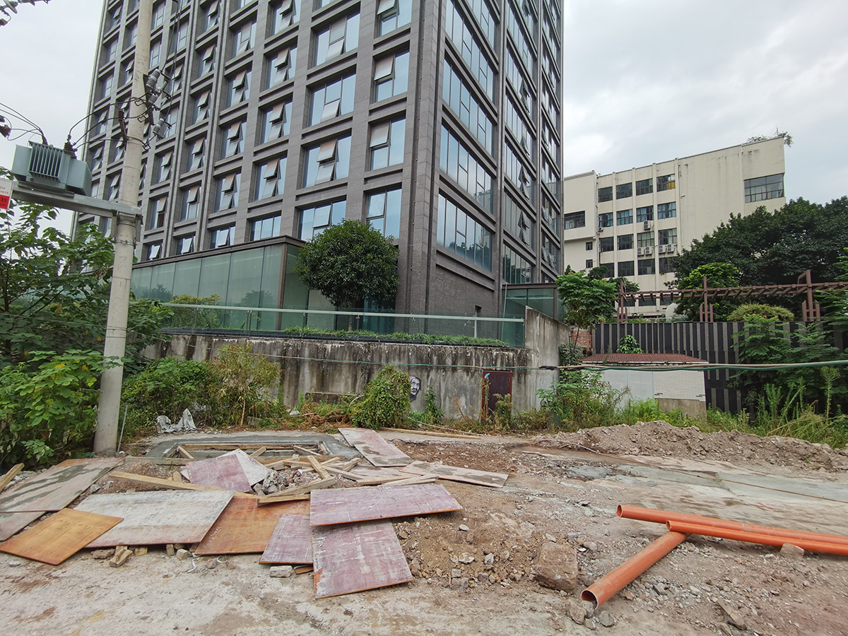 界面重庆实地走访两个项目发现,“江山1号”靠近龙门浩道路的大门紧闭,门前的道路破烂不平,堆积着沙石、破木板和杂物,3栋建筑的玻璃和墙体肉眼可见灰尘堆积,并未有除重庆聚丰以外的企业入驻和居民入住,而“纵横国际”商业物业区域紧闭,除少部分写字间楼层有租赁外未见营业现象。