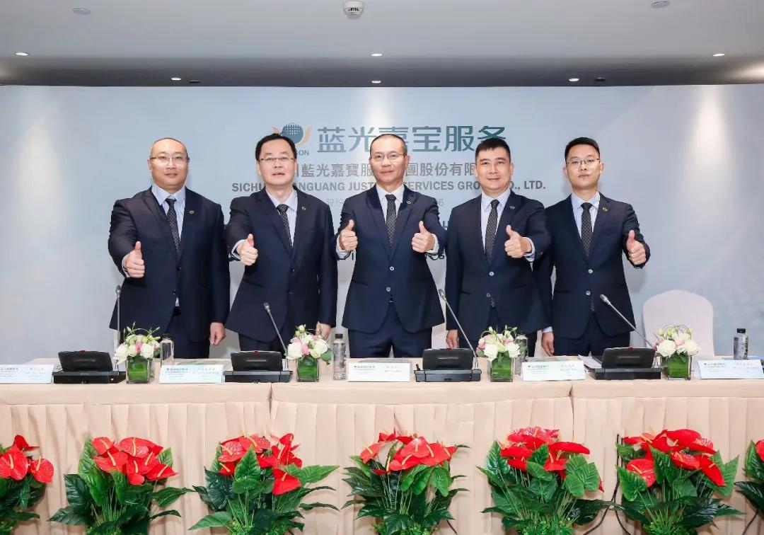 蓝光嘉宝服务董事长姚敏、副董事长孙哲峰、总裁刘侠、联席总裁兼首席财务官及联席公司秘书邹昊、副总裁吕良海出席本次中期业绩发布会。