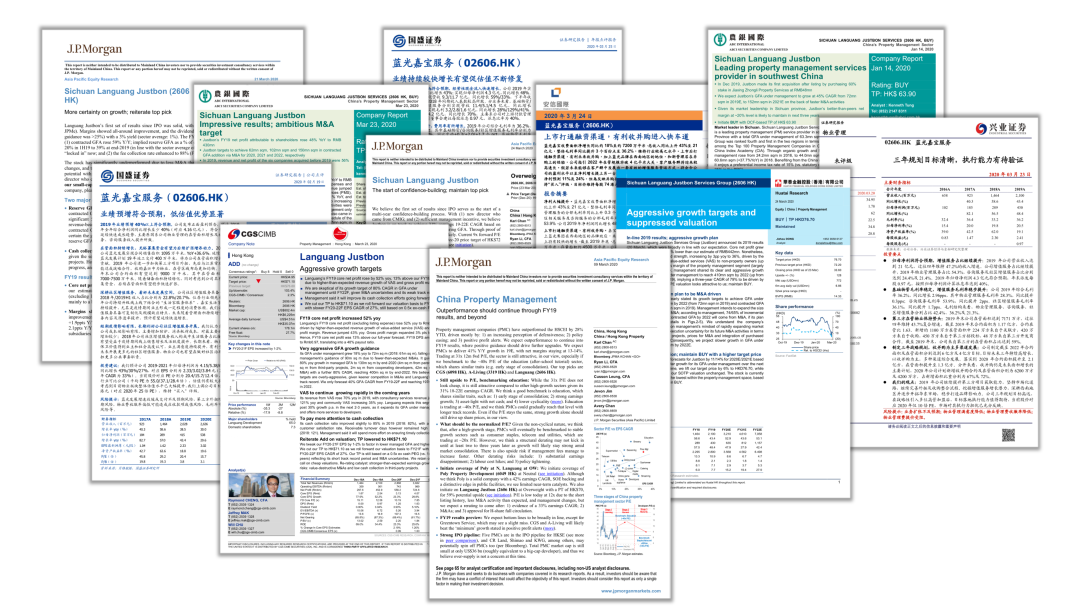 今年以来,公司以稳健增长持续夯实基本面,资本市场认可度进一步提升。包括摩根大通、中信里昂、华泰金融、安信国际、银河国际、国盛证券等多家金融机构或券商持续覆盖蓝光嘉宝服务,对公司高质量发展成果表示认同,并给予“买入”评级。