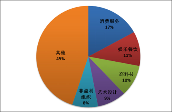 在行业上,消费服务行业自由职业者分布最多,17%的该行业人员为自由职业者。