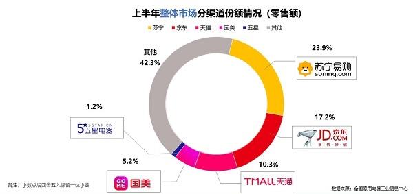 相对的,京东下沉乡镇的家电专卖店,虽然半年数量增加20%,但却迟迟没有公布销售额、交易额,仅仅是强调统筹货源和数据,处理零售问题。