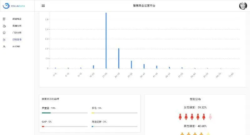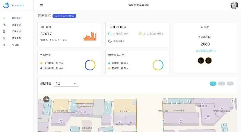 以人脸识别和语音识别为优势技术,百度也在更广泛的领域推动AI技术落地。杭州湖滨银泰in77商场从2018年开始使用含有百度AI人脸识别及人体分析等技术的CELLA提供的零售云智慧商业解决方案,打造购物中心智慧运营新模式。通过在线下商场各人流密集区域部署摄像头,百度进行人脸抓拍自动采集会员照片,帮助银泰in77建立虚拟会员系统。基于设备实时收集以及商场原有的会员数据,CELLA会从多维度进行大数据分析完成顾客画像,让购物中心全面了解客户,实现AI辅助导购进行销售决策。