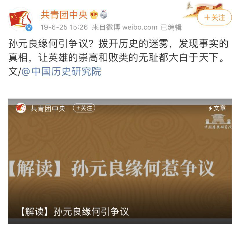 6月25日,共青团官方微博刊发《解读:孙元良缘何引争议》,将事件彻底推上风口浪尖。
