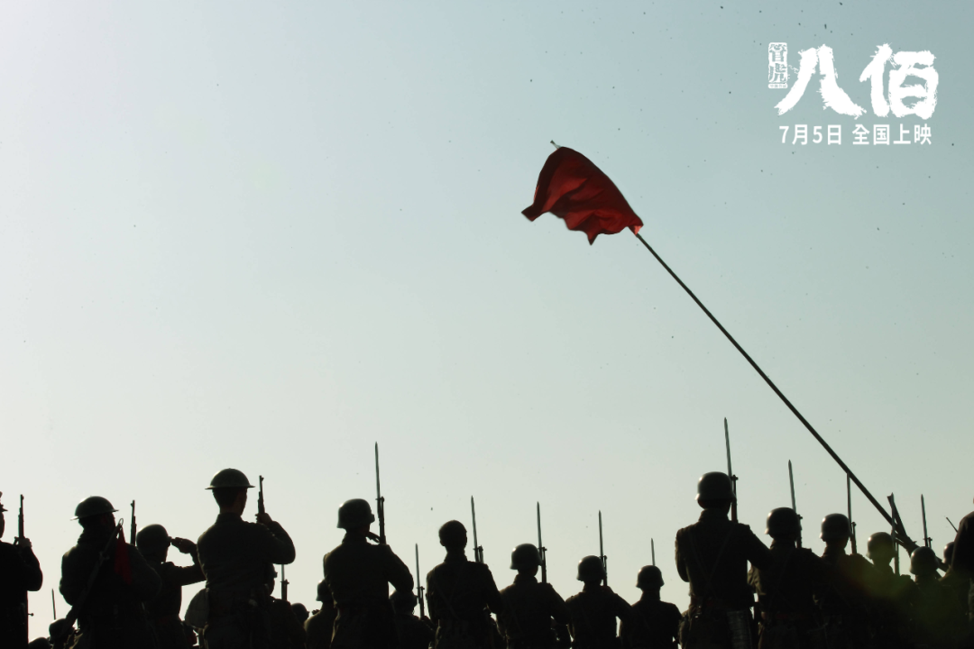 四行仓库保卫战绕不开的升旗段落,在电影里得到了保留,但升旗的镜头还是做了调整,删去了特写镜头,旗帜特写被替换成了士兵们的反应,剩下镜头中的旗帜也做了模糊处理。故事中的纳粹旗帜也没有完整展现,这些都属于对敏感元素情理之中的调整。