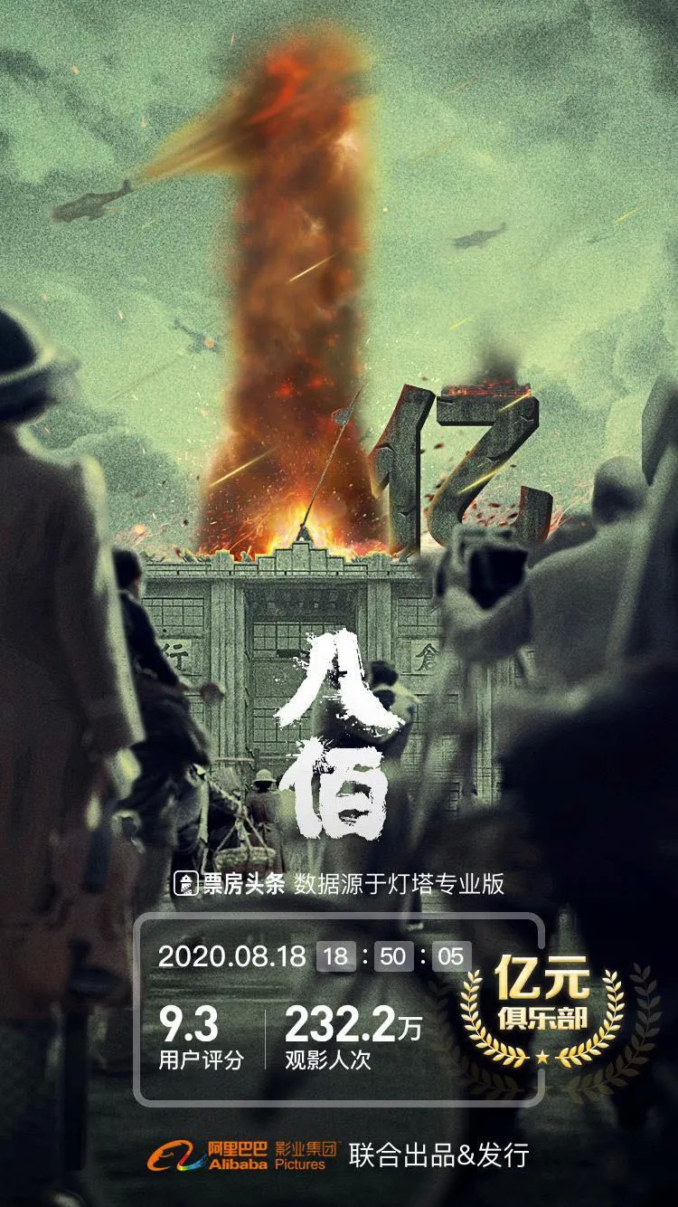 14日周五点映票房1439万,17日周一工作日点票房映5052万上座率高达42%,18日点映票房总破亿,豆瓣开分8.3,淘票票、猫眼电影9.4——《八佰》的首波表现可以用气势如虹来形容,目前灯塔数据上《八佰》的预测票房已经达到17亿元,绝对称得上是当前电影市场“救市”之作。