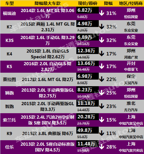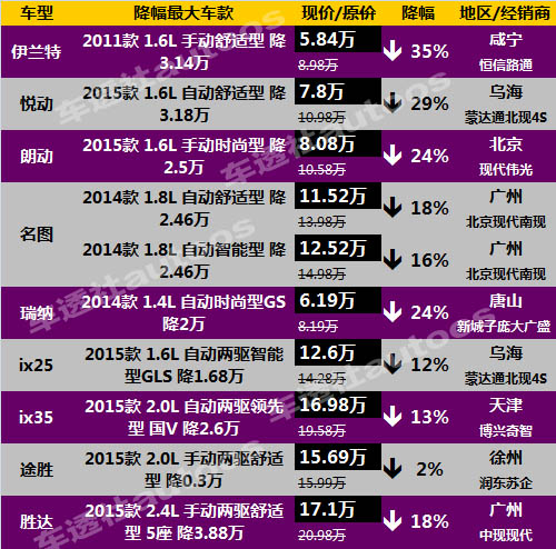 整体销量的持续走低,使得韩系车的终端降幅越扩越大,朗动、智跑等终端售价都已经8折不到。以下车透社梳理出了韩系车12月降价榜。