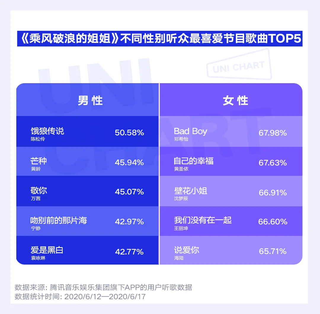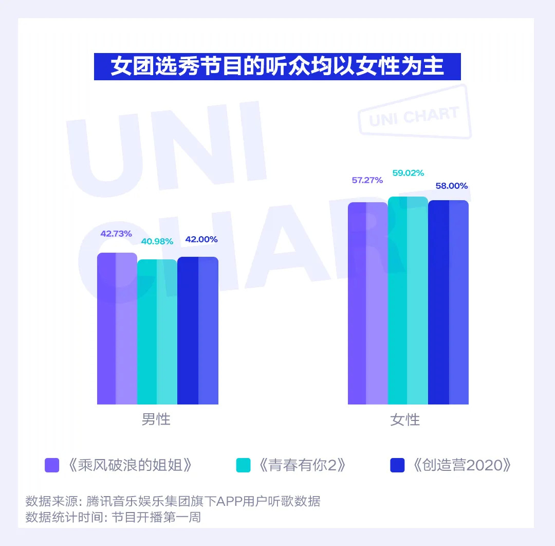 【由你音乐研究院】通过分析腾讯音乐娱乐集团旗下QQ音乐、酷狗音乐、酷我音乐三大在线音乐平台的用户听歌数据,全方位盘点了《乘风破浪的姐姐》《青春有你2》《创造营2020》三档女团综艺的节目歌曲,多维度分析《乘风破浪的姐姐》与传统女团选秀节目听歌听众的差异性。
