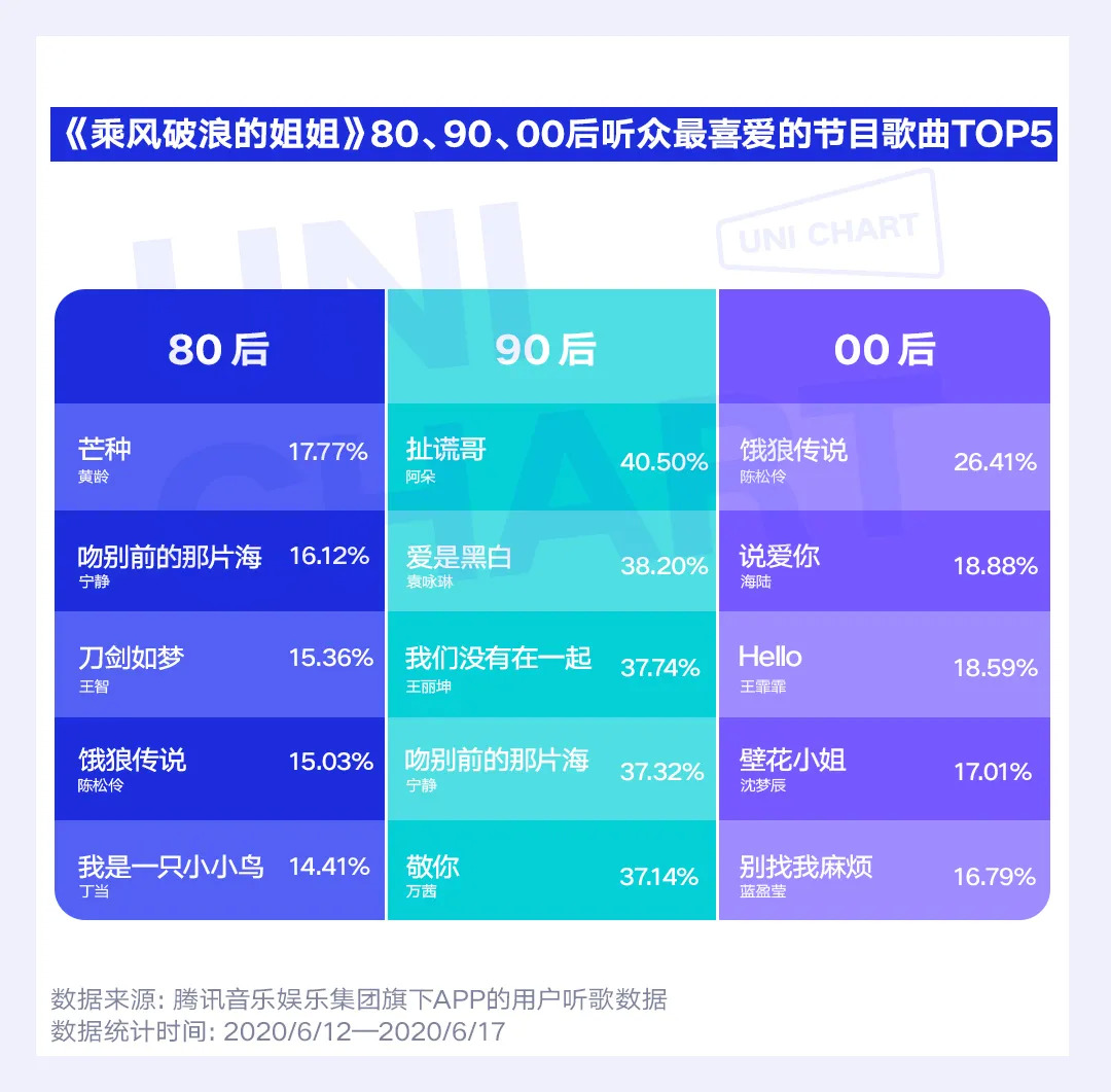 不同年龄段听众都关注《乘风破浪的姐姐》中的什么?