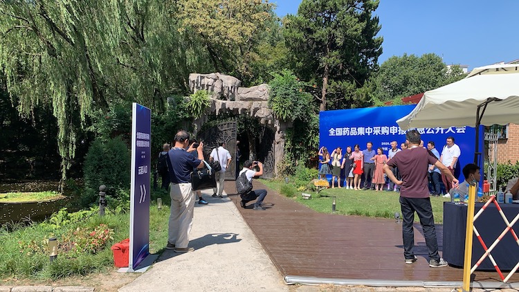 到了早上九点,现场已是人声鼎沸。与过往历次集采开始前现场的紧张与沉寂不同的是,都已是“身经百战”了的药企代表们这次显得要轻松了许多,现场相互打招呼、聊天、打气的也不在少数,许多人开始了一轮轮的“组团”合影留念,当然也依然有不少没有申报品种的药企代表赶来“凑热闹”。
