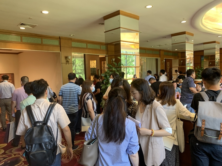 早上七点后,就陆续有药企代表来到了本次申报的现场,与前几次全国集采不同的是,本次申报现场移师上海龙柏饭店,而这也可能因为由于人数越来越多,此前的申报场所已无法容纳了。而龙柏饭店也是国家医保局多次在上海召开内部会议的地点。