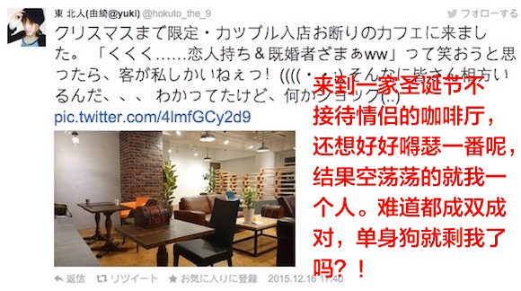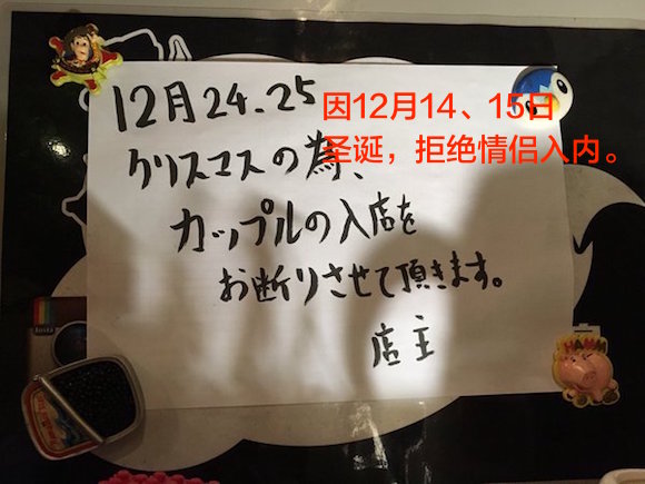 其实去年,这家店就因为圣诞节拒绝接待情侣大受追捧。